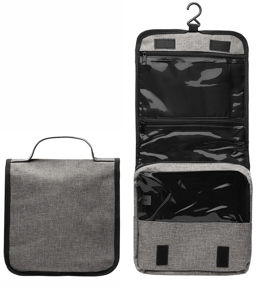 Necessaire de baño fabricado en polycanvas, gancho colgante para poder desplegar, Cierro con velcro. Medidas: Cerrado: 24 x 24 cm Desplegado: 50 x 24 x 7 cm, personalizados con el logo de su empresa bordado, estampado o sublimado